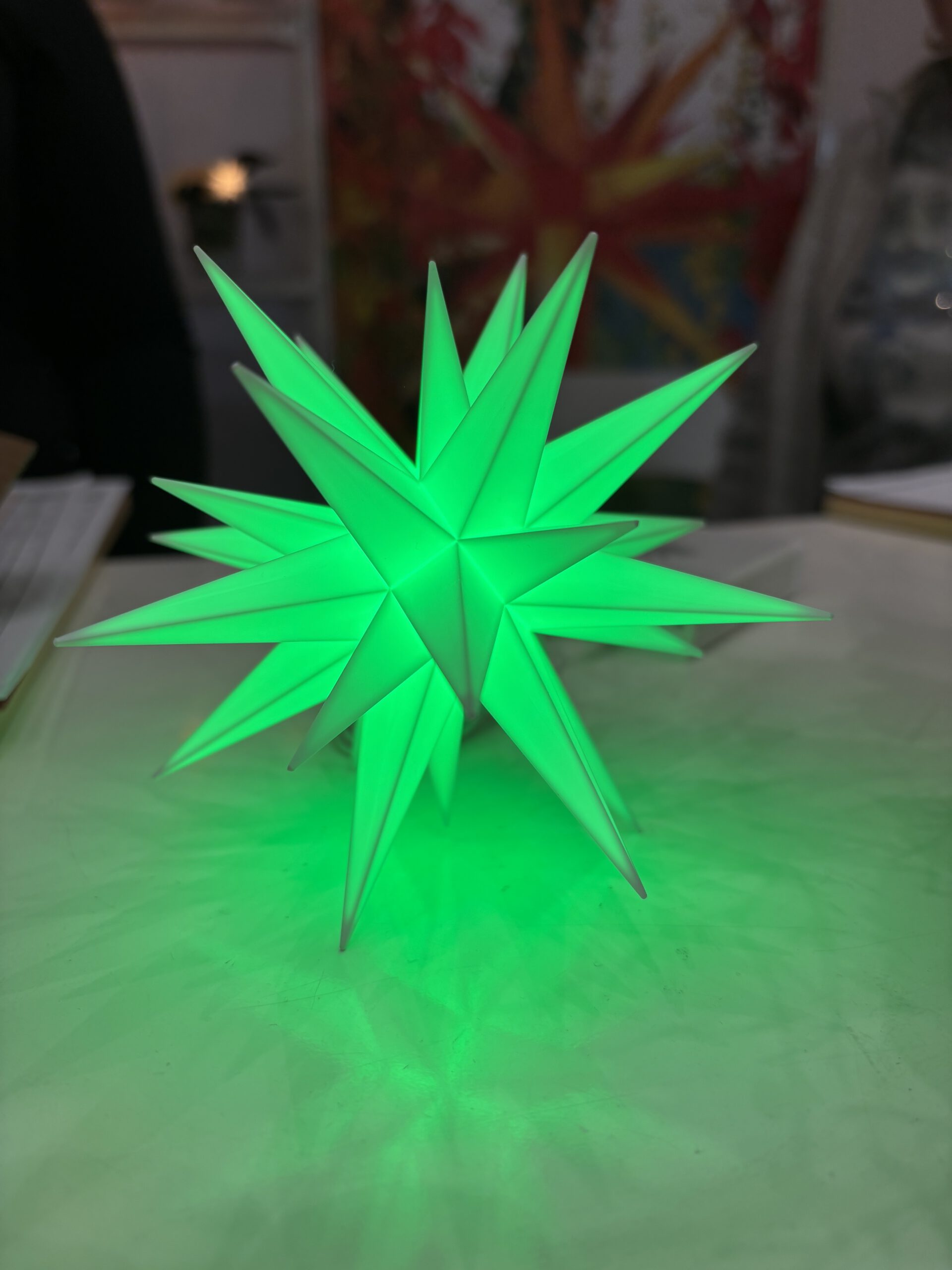 1. Erstmals gibt es ein Set von farbigen Austausch-LEDs in den Farben Violett, Grün, Orange und Blau, die deinen kleinen Stern (13 cm) wahlweise in einer dieser Farben leuchten lassen. Wir haben das gleich an einem weißen Stern ausprobiert und waren von dem warmen Licht begeistert. Reserviert Euch gerne Euer LED-Set!